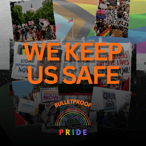 This movement has grown into local Bulletproof Pride Chapters and local We Keep Us Safe Coalitions. To get involved with this campaign, visit the chapter signup link at the top of this page or consider donating to Bulletproof Pride so we can fund and support our chapters.